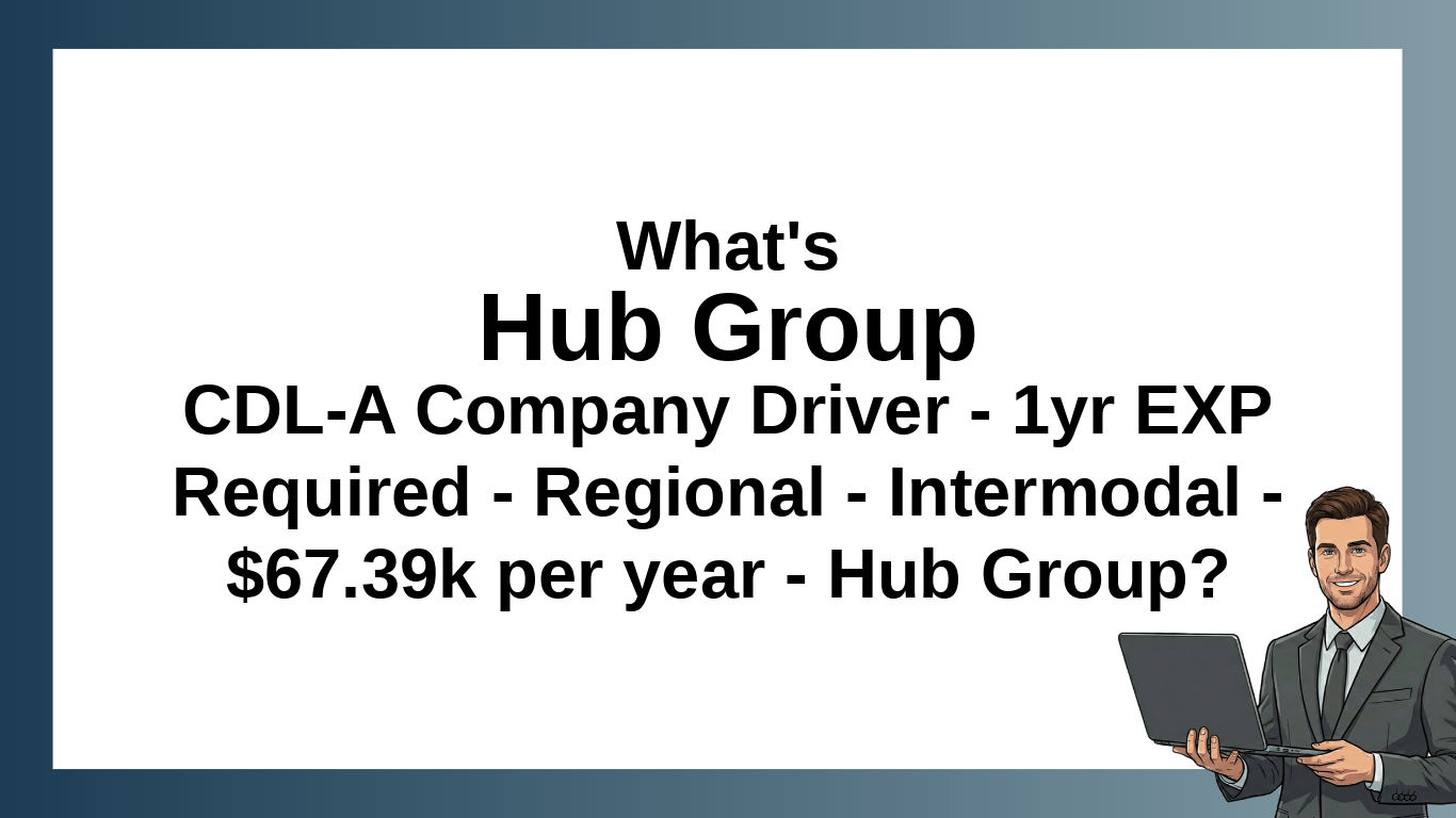 Hub Group CDL-A Company Driver - 1yr EXP Required - Regional - Intermodal - $67.39k per year - Hub Group: Job Overview, Location, and Employment Details